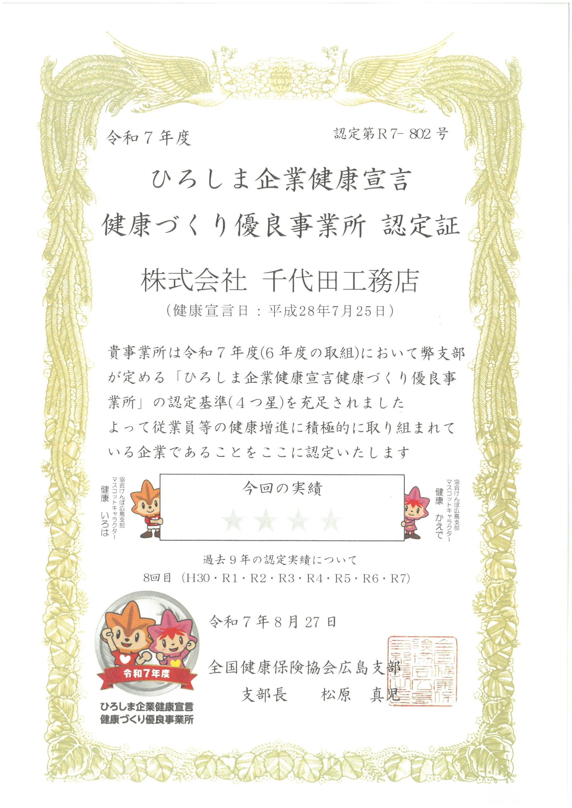 ひろしま企業健康宣言 健康づくり優良事業所に認定されました